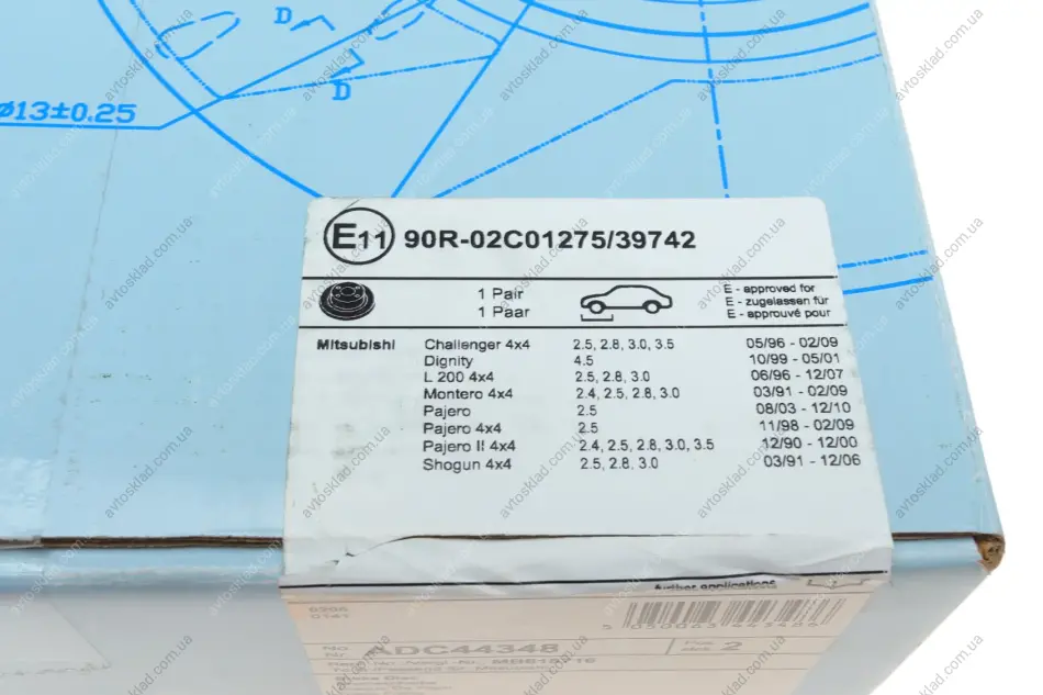 Диск гальмівний передній Mitsubishi BLUE PRINT ADC44348