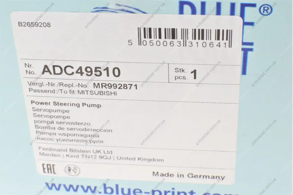 Насос гідропідсилювача BLUE PRINT ADC49510