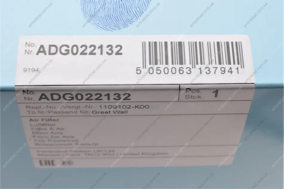 Фільтр повітряний BLUE PRINT ADG022132