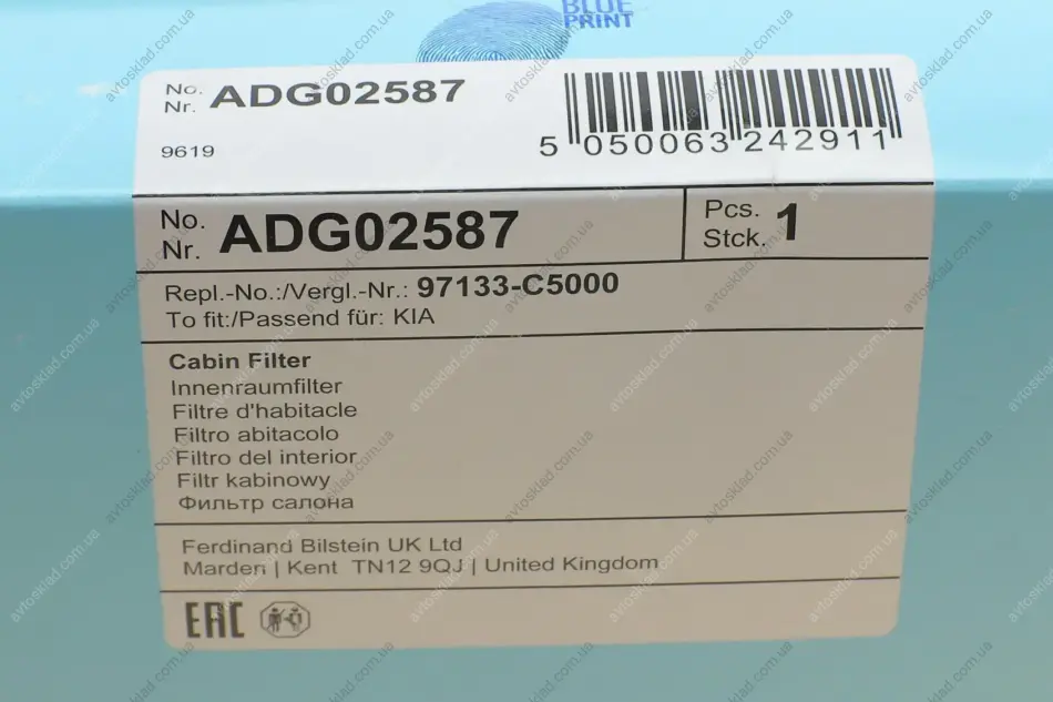 Аналоги "ADG02587 BLUE PRINT":
