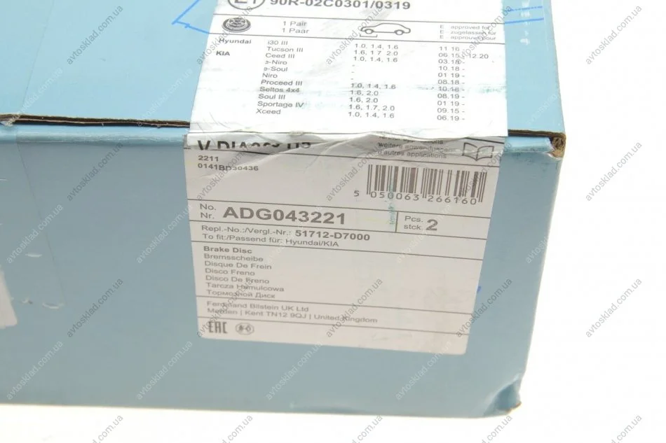 Гальмівний диск BLUE PRINT ADG043221