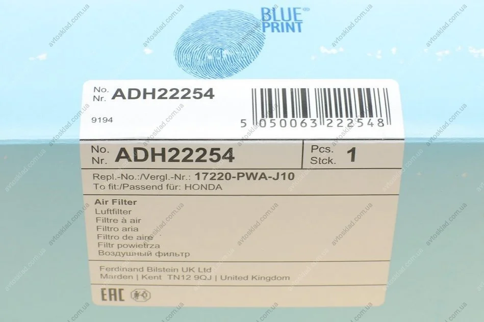 Фільтр повітряний HONDA BLUE PRINT ADH22254