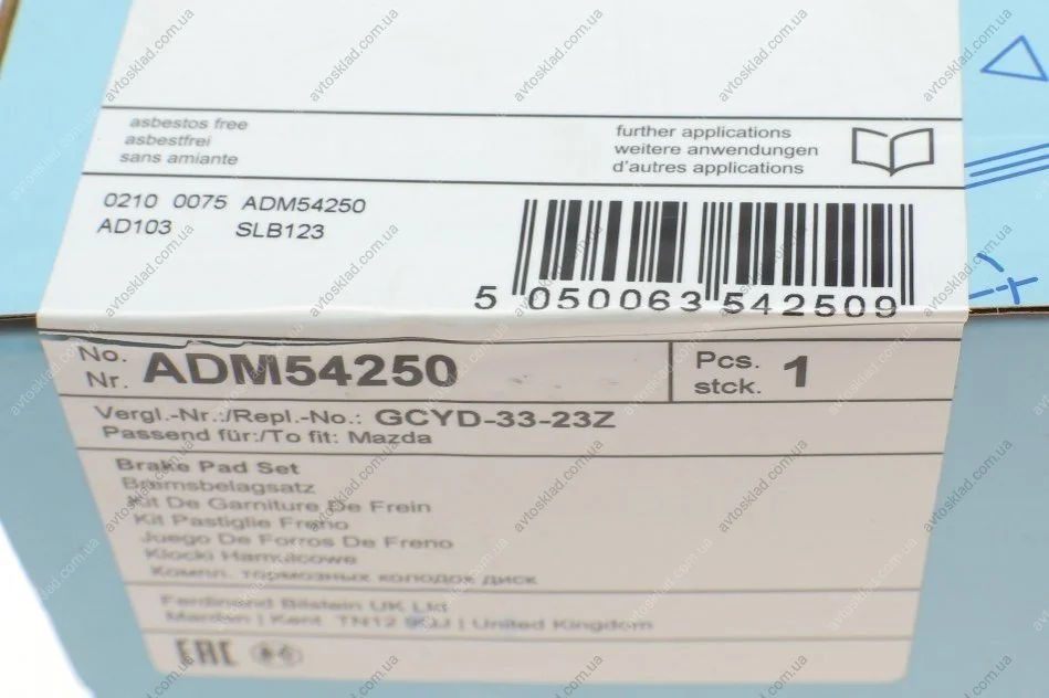 Гальмівні колодки дискові BLUE PRINT ADM54250
