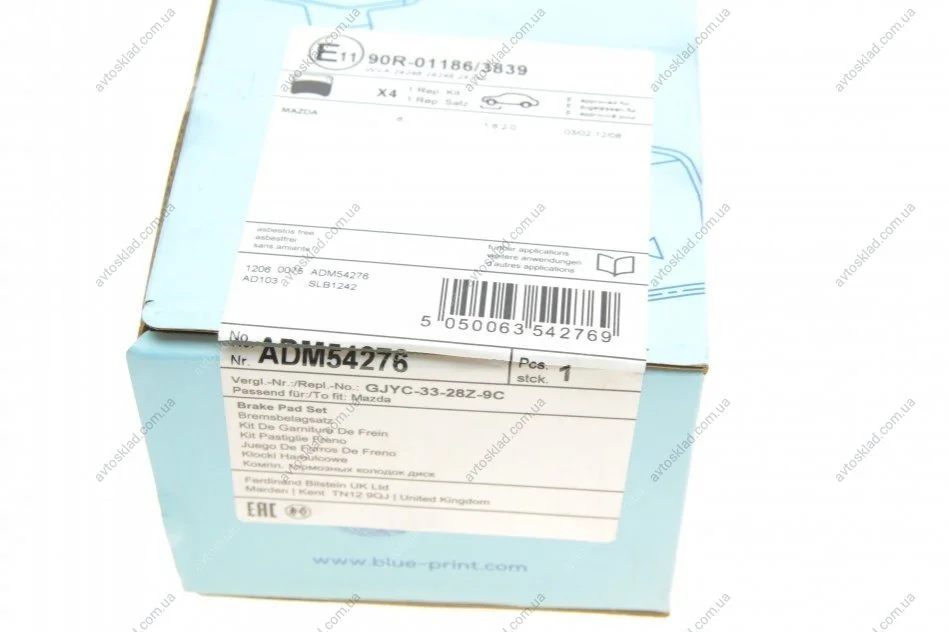 Колодки гальмові дискові передні Mazda BLUE PRINT ADM54276