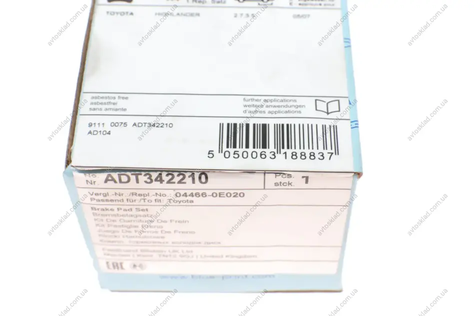 Гальмівні колодки дискові BLUE PRINT ADT342210