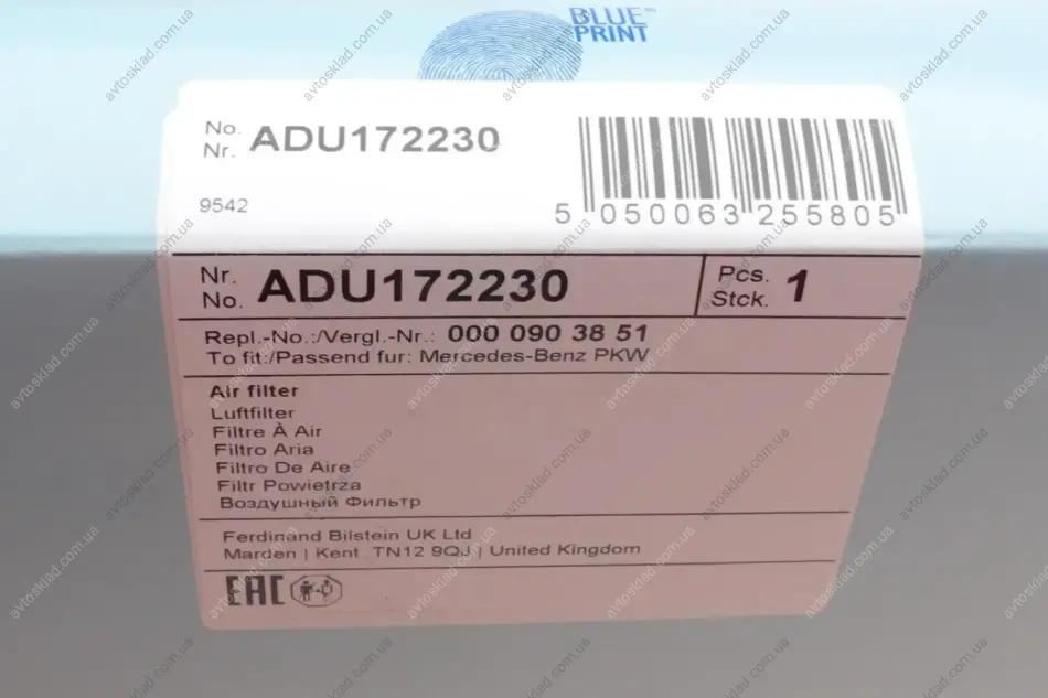 Фільтр повітряний BLUE PRINT ADU172230