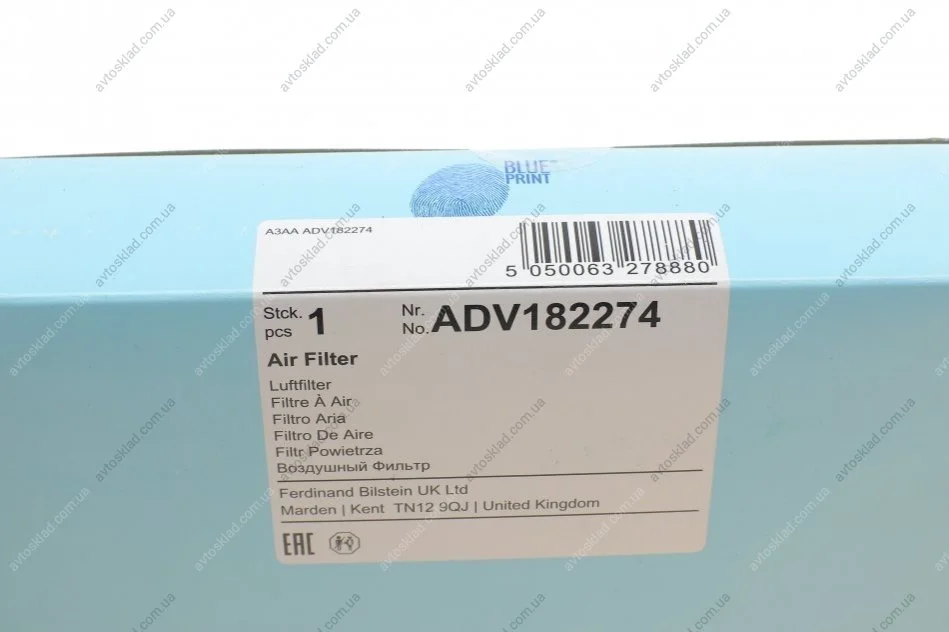 Фільтр повітряний BLUE PRINT ADV182274