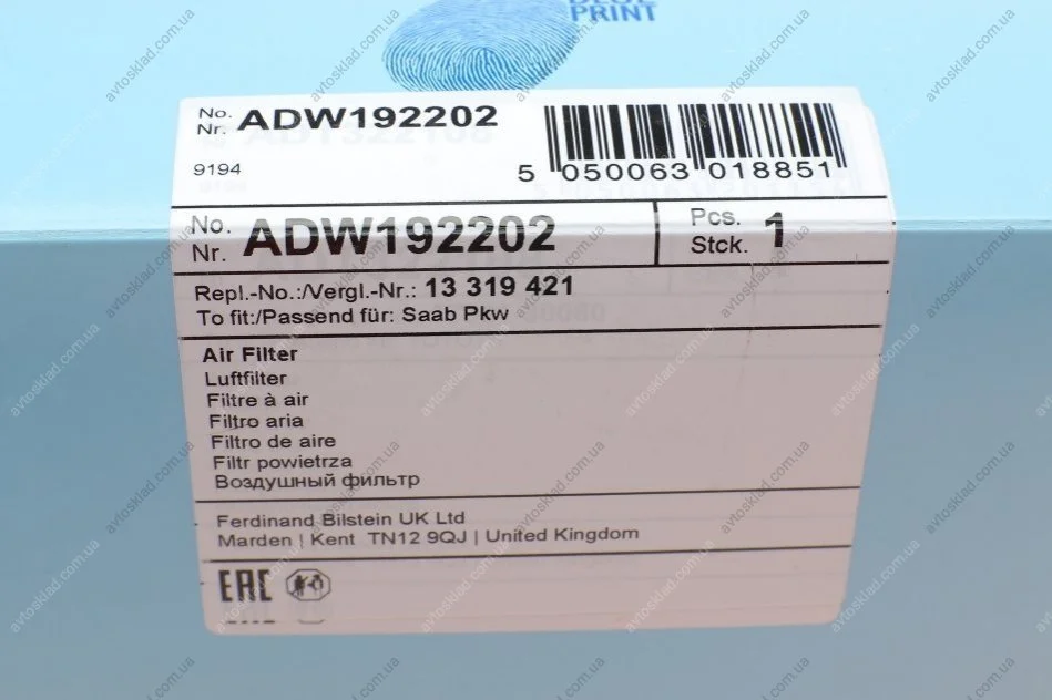 Фільтр повітряний Chevrolet, Opel BLUE PRINT ADW192202