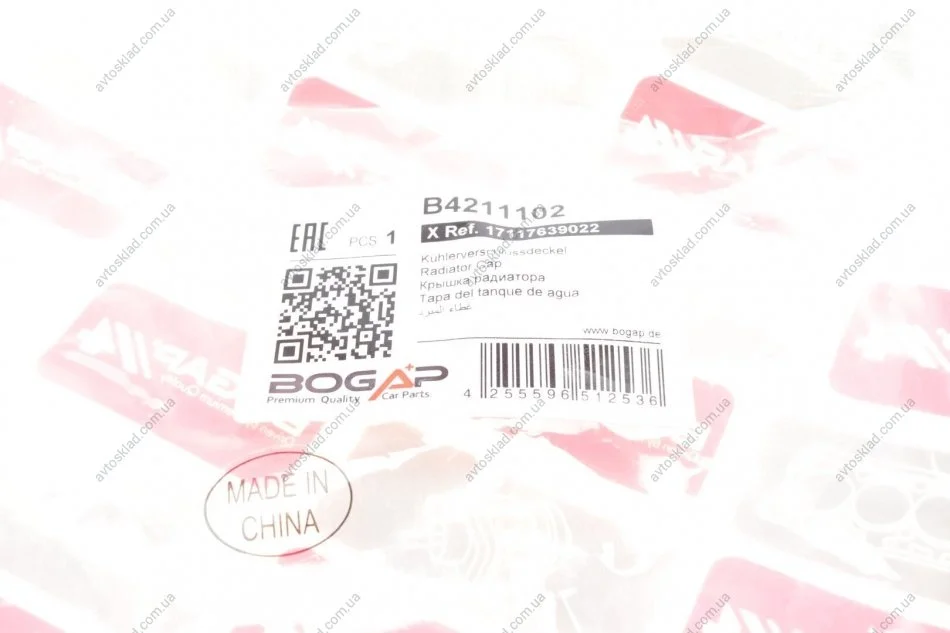 Кришка розширювального бачка охолоджуючої рідини Bogap B4211102