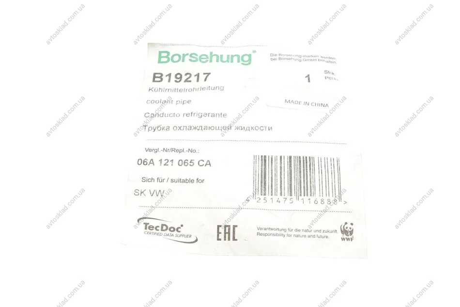 Патрубок системи охолодження Borsehung B19217