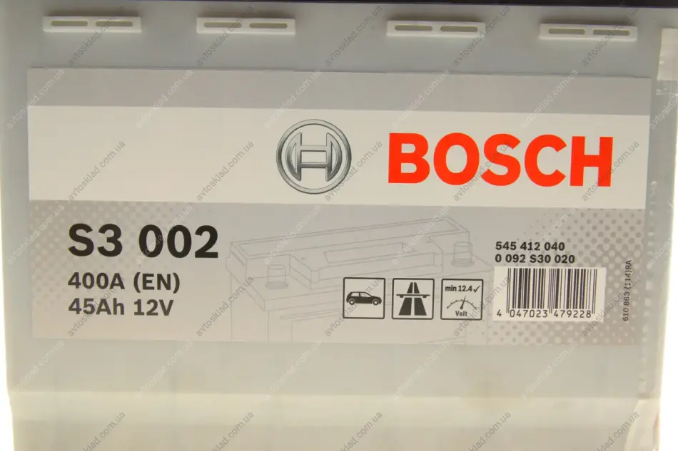 Акумулятор 45Ah-12v (S3002) (207x175x190),R,EN400 BOSCH 0092S30020