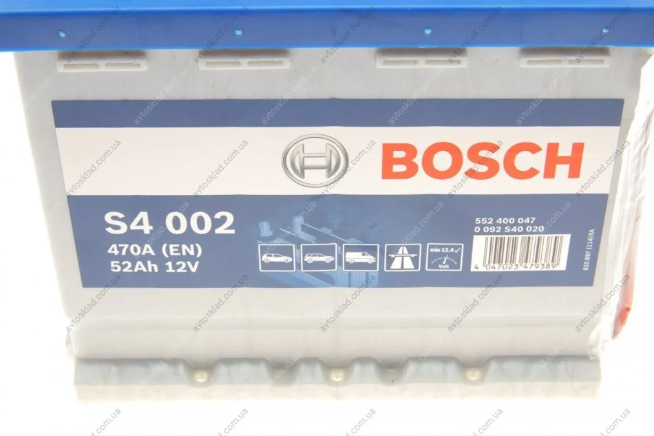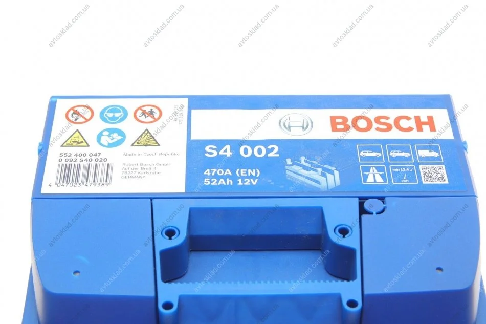 Акумулятор 52Ah-12v (S4002) (207x175x190),R,EN470 BOSCH 0 092 S40 020