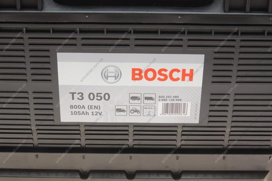Акумулятор 105Ah-12v (T3050) (330x172x240),L,EN800 клеми по центру BOSCH 0092T30500