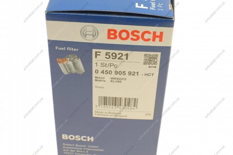 Фільтр паливний Volvo S40/S60/S80/XC70/XC90 (1.6-4.4) 00- BOSCH 0450905921
