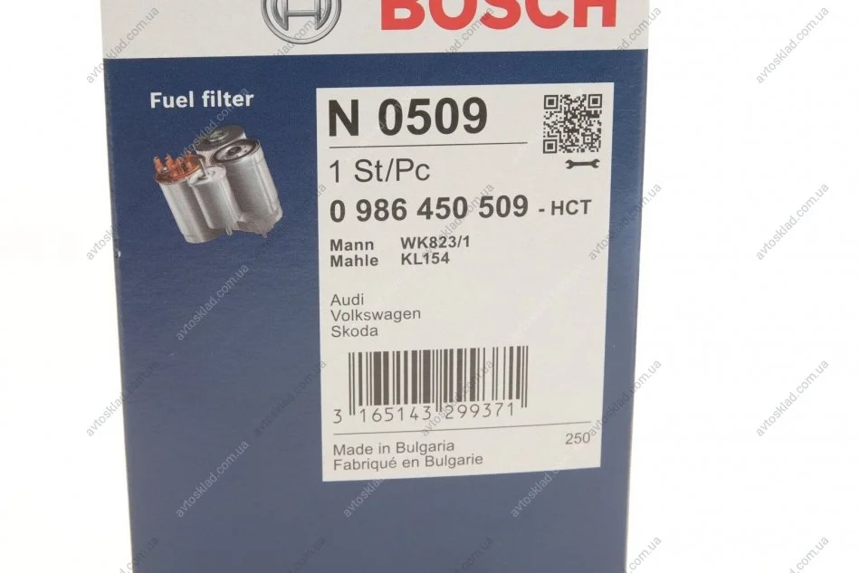 Фільтр паливний VAG 2.5 TDI 97-08 BOSCH 0986450509