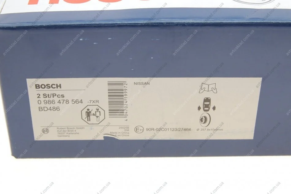 Гальмівний диск BOSCH 0986478564