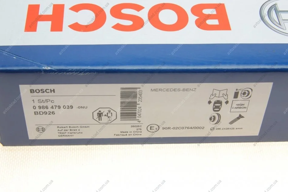 Гальмівний диск MB E200/220/230/240/270/280/300/320 W211 \'\'F \'\'02-09 BOSCH 0986479039