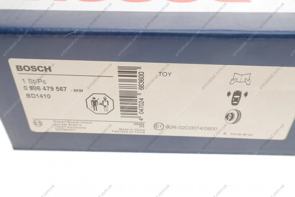 Диск гальмівний TOYOTA, передн., вент. BOSCH 0986479567