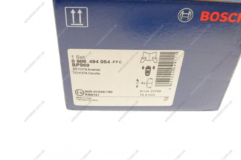 Колодка гальм. диск. TOYOTA AVENSIS (T25), COROLLA V передн. BOSCH 0986494054