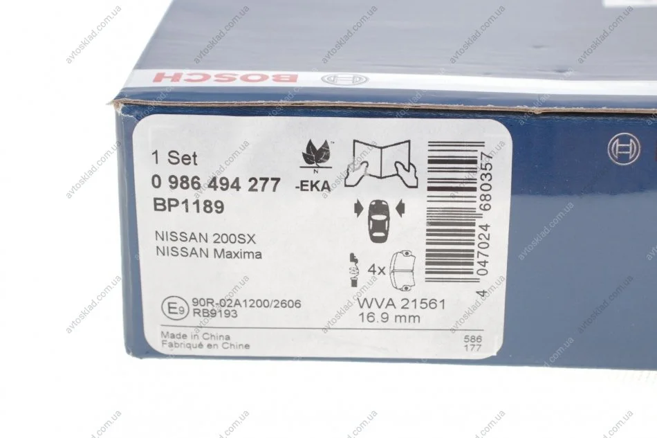Колодка гальм. диск. NISSAN TEANA передн. BOSCH 0986494277