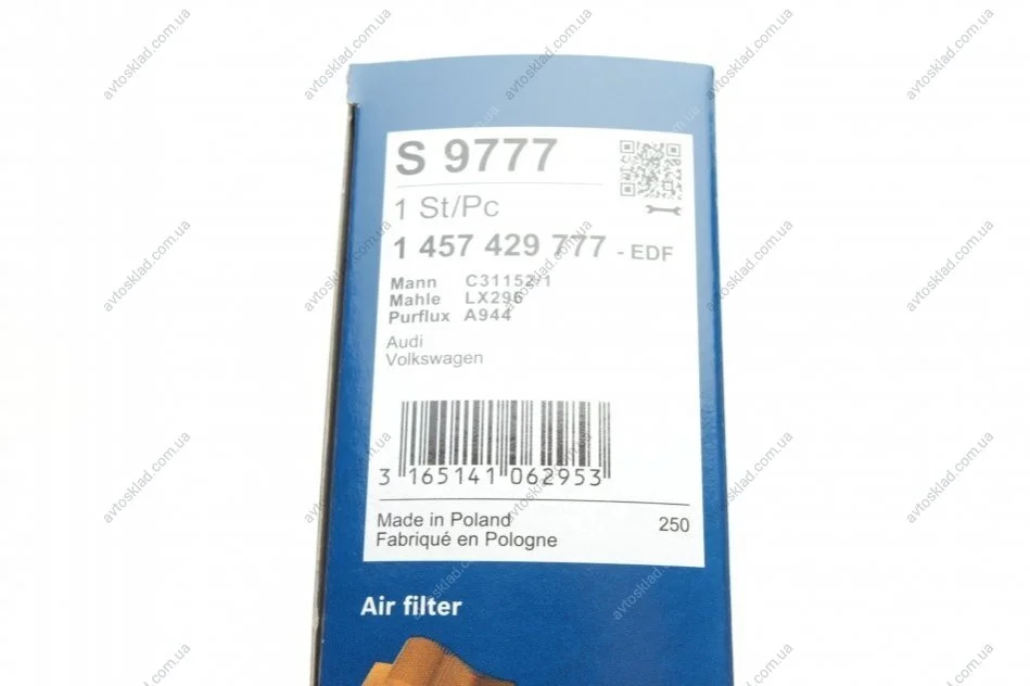 Фільтр повітряний AUDI A6, VW PASSAT BOSCH 1457429777