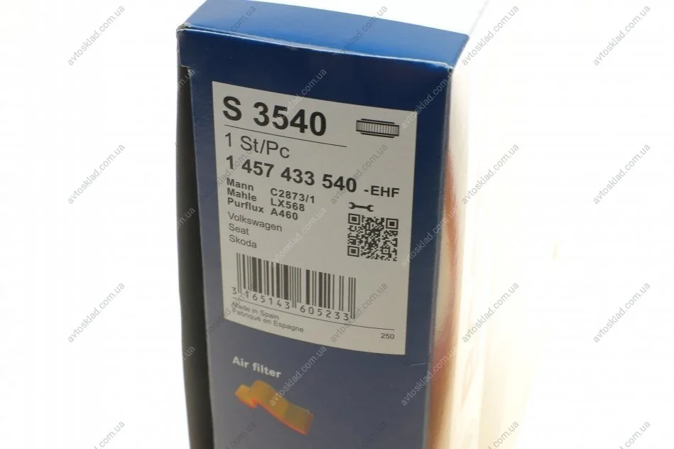 Фільтр повітр. Audi,VW Golf,Passat 1.3 BOSCH 1457433540