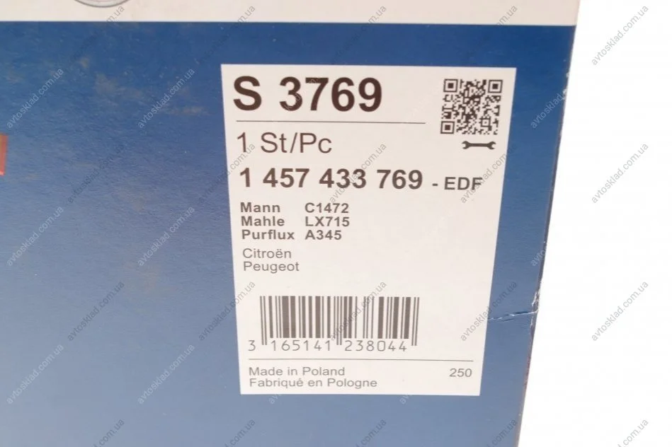 Фільтр повітряний BOSCH 1457433769