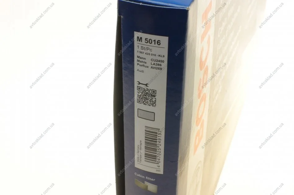 Повітряний фільтр салону 5016 Audi A4 8K, A5, Q5, Porsche Macan BOSCH 1987435016