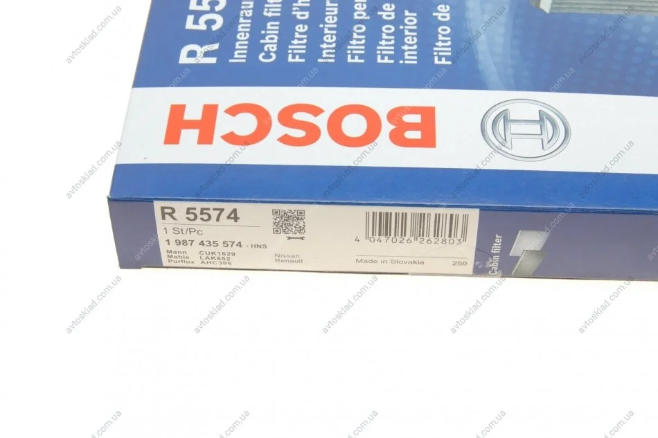 ФІЛЬТР САЛОНУ З АКТИВОВАНИМ ВУГІЛЛЯМ BOSCH 1987435574