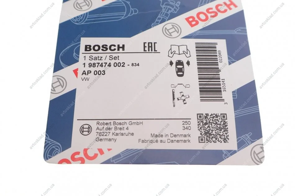 Монтажний к-кт гальмівних колодок BOSCH 1987474002