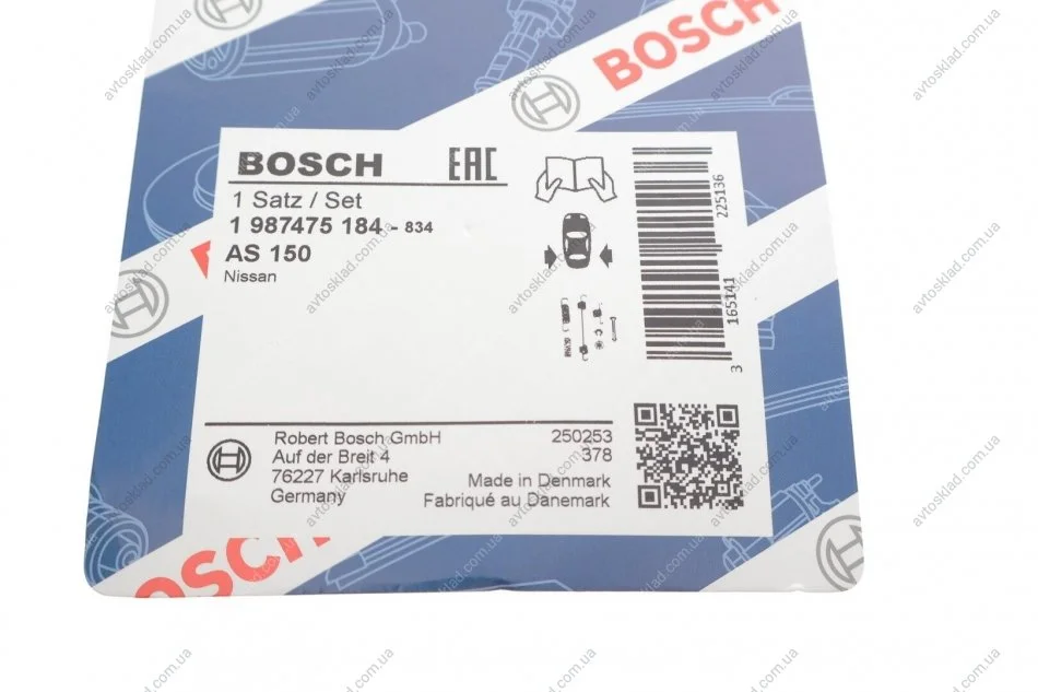 Монтажний к-кт гальмівних колодок BOSCH 1987475184