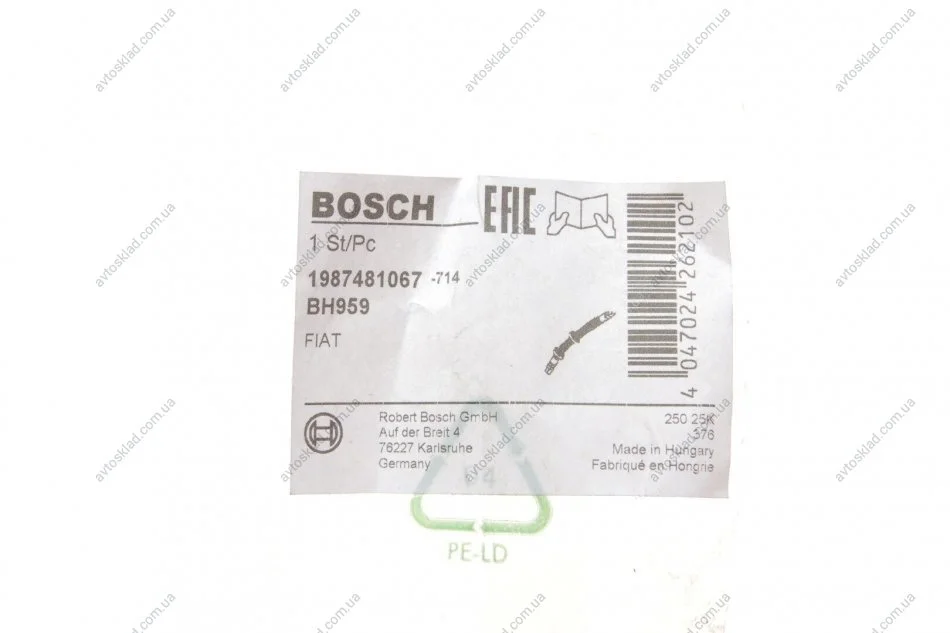 ШЛАНГ ГАЛЬМ. ПЕРЕДНІЙ BOSCH 1987481067