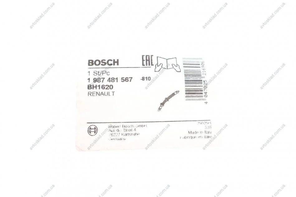 Гальмівний шланг RENAULT Megane III \'\'F \'\'1.5dci BOSCH 1987481567