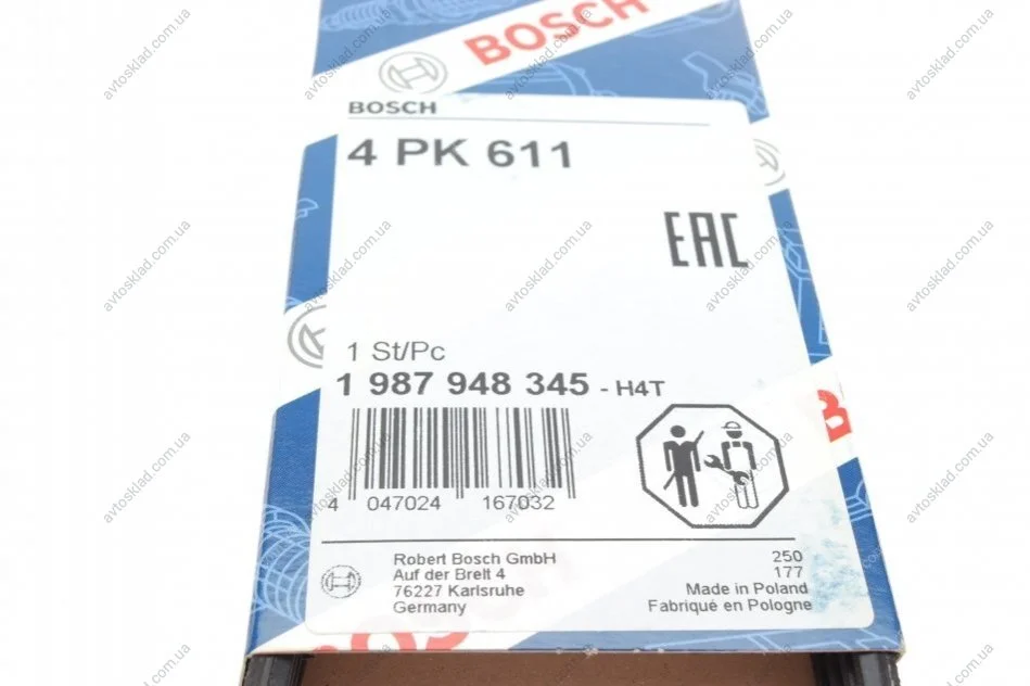 Ремінь П-клиновий 4PK611 BOSCH 1987948345