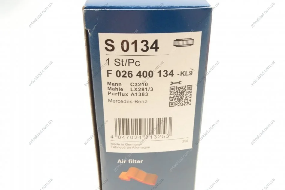 Повітряний фільтр 0134 MB W204,C204,S204,,W212,S212,A207,C207,R171,R172 07- BOSCH F026400134