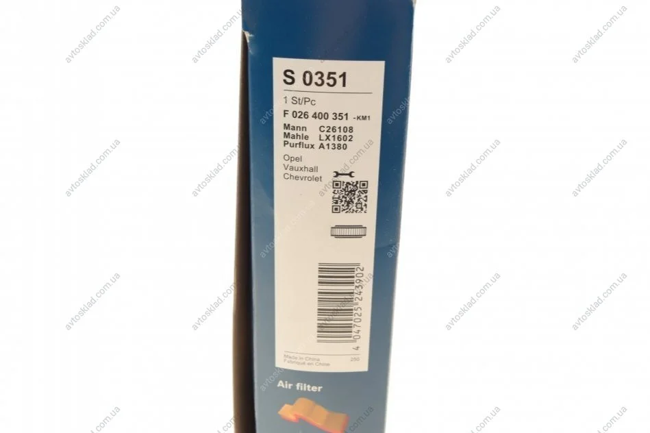 Фільтр повітряний BOSCH F 026 400 351