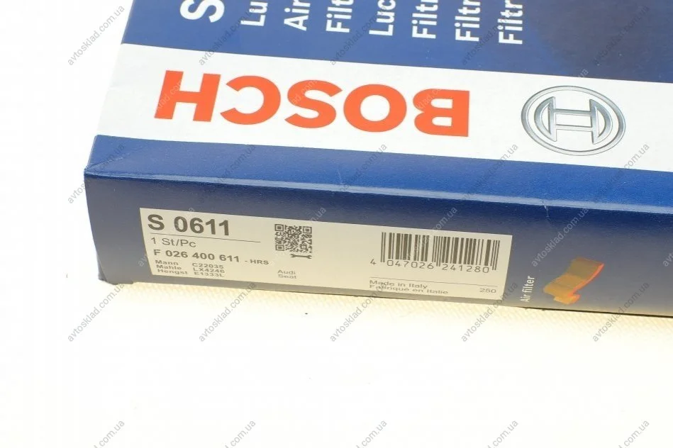 Повітряний фільтр AUDI/SKODA/VW A1/A3/Q2/Fabia/Karoq/Scala/Golf VII \'\'15>> BOSCH F026400611