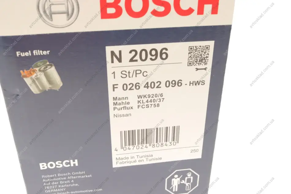 Фільтр топл. NISSAN PATHFINDER 2.5 BOSCH F026402096
