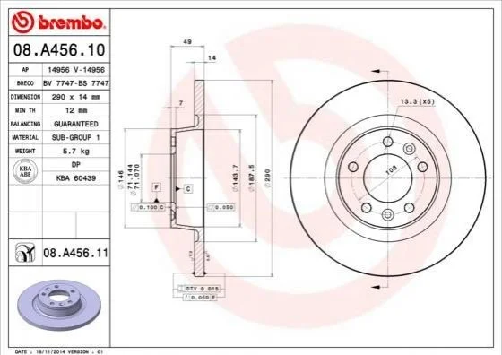 Гальмівний диск BREMBO 08.A456.10