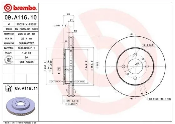 Диск гальмівний BREMBO 09.A116.11