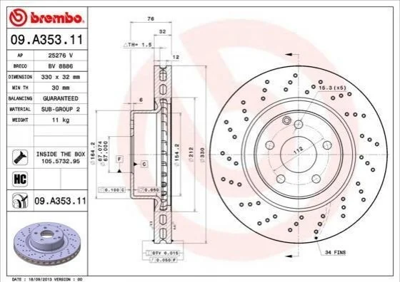 Гальмівний диск BREMBO 09.A353.11