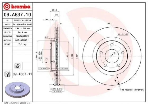 Диск гальмівний BREMBO 09.A637.10