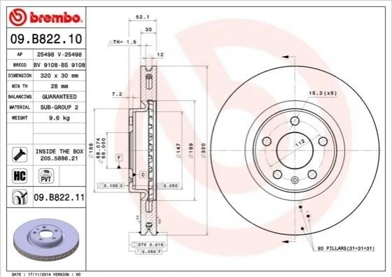 Гальмівний диск BREMBO 09.B822.11