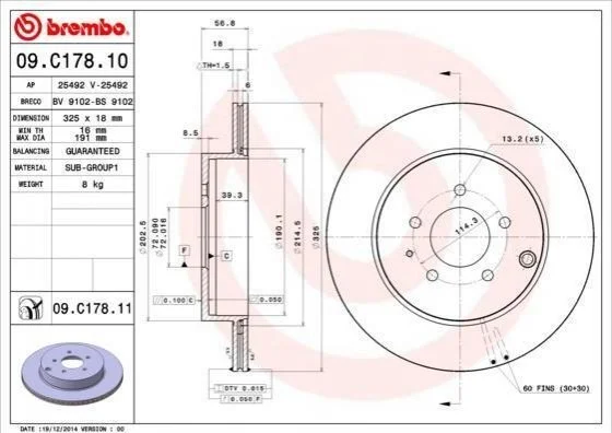 Гальмівний диск BREMBO 09.C178.11