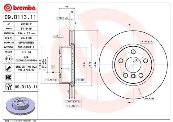 ГАЛЬМІВНИЙ ДИСК BREMBO 09.D113.11