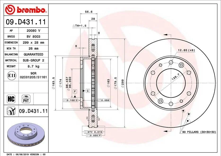 Гальмівний диск BREMBO 09.D431.11