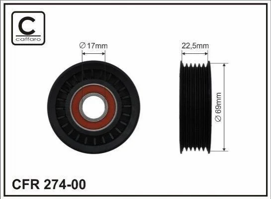 Ролик натяжний механізму поліклінового ременя Mazda 1.8I, 2.0I, 2.3I, 6 02,02-, MPV 02.03-, MX5 05.07- 69x17x22,5 CAFFARO 274-00