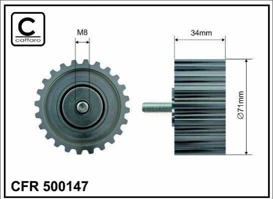 Ролик проміжний ременя ГРМРолік проміжний ременя ГРМFiat Ducato, IVECO Daily 2.3D 02- 71x8x34 CAFFARO 500147