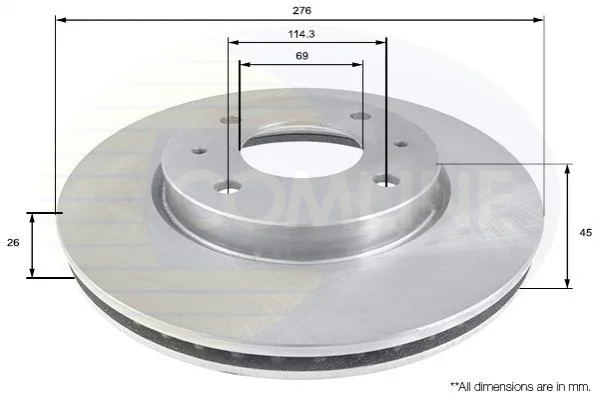 - Диск гальмівний вентильований Mitsubishi Galant 96->04, Lancer 03-> Comline ADC0364V
