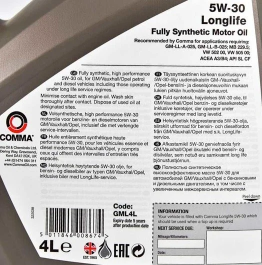 Олія моторна Longlife 5W-30 (4 л) COMMA GML4L
